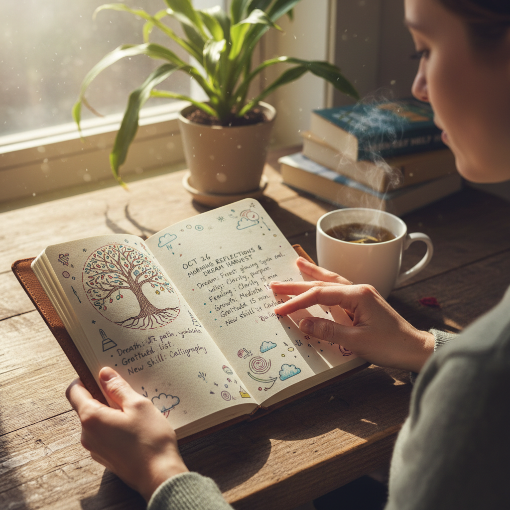 - Prowadzenie dziennika snów wspiera rozwój osobisty i samoświadomość.