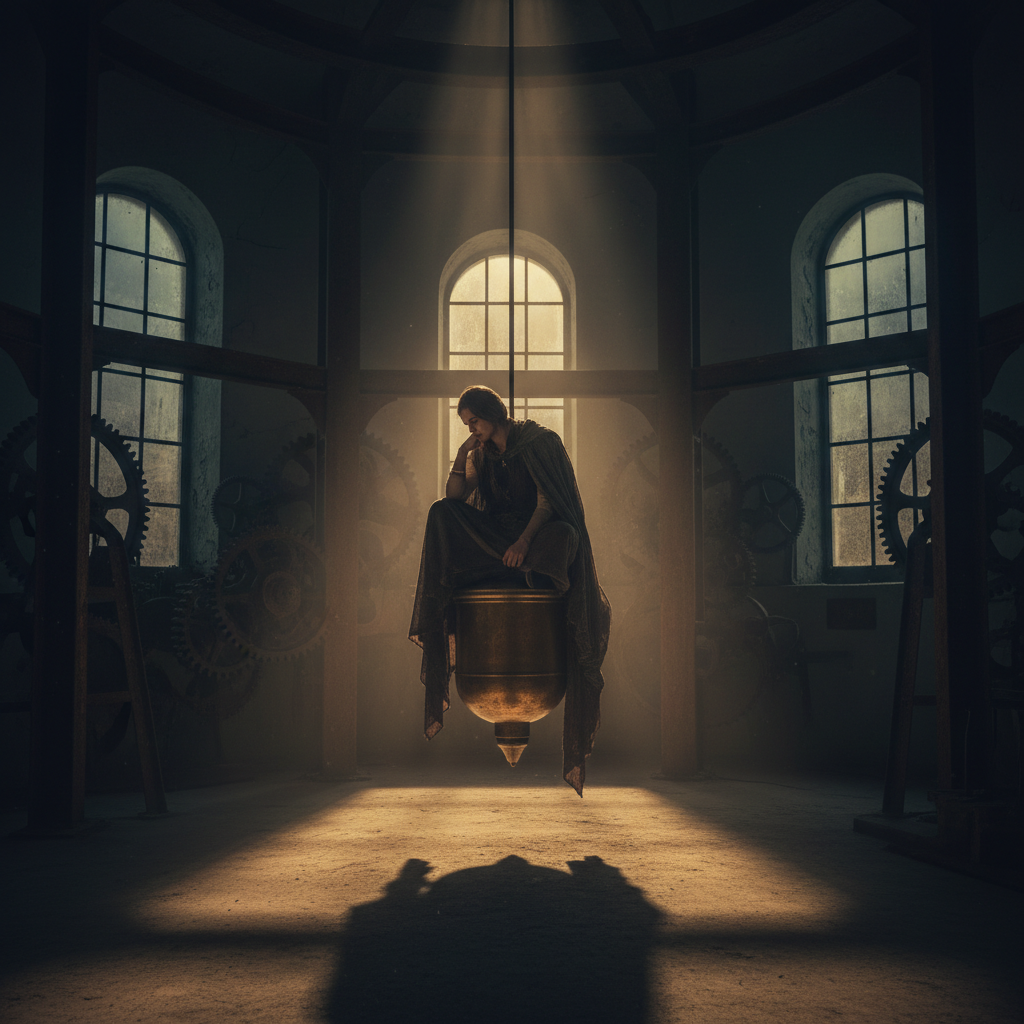 Zdjęcie przedstawia osobę głęboko zamyśloną podczas wróżenia z wahadełka – symbol refleksji i autosugestii. Słowa kluczowe: psychologia wróżenia, autosugestia, jak wróżyć z wahadełka.