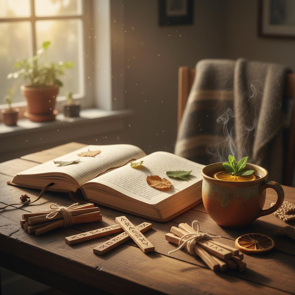 - Oczyść przestrzeń – zapal kadzidło lub zioła oczyszczające.