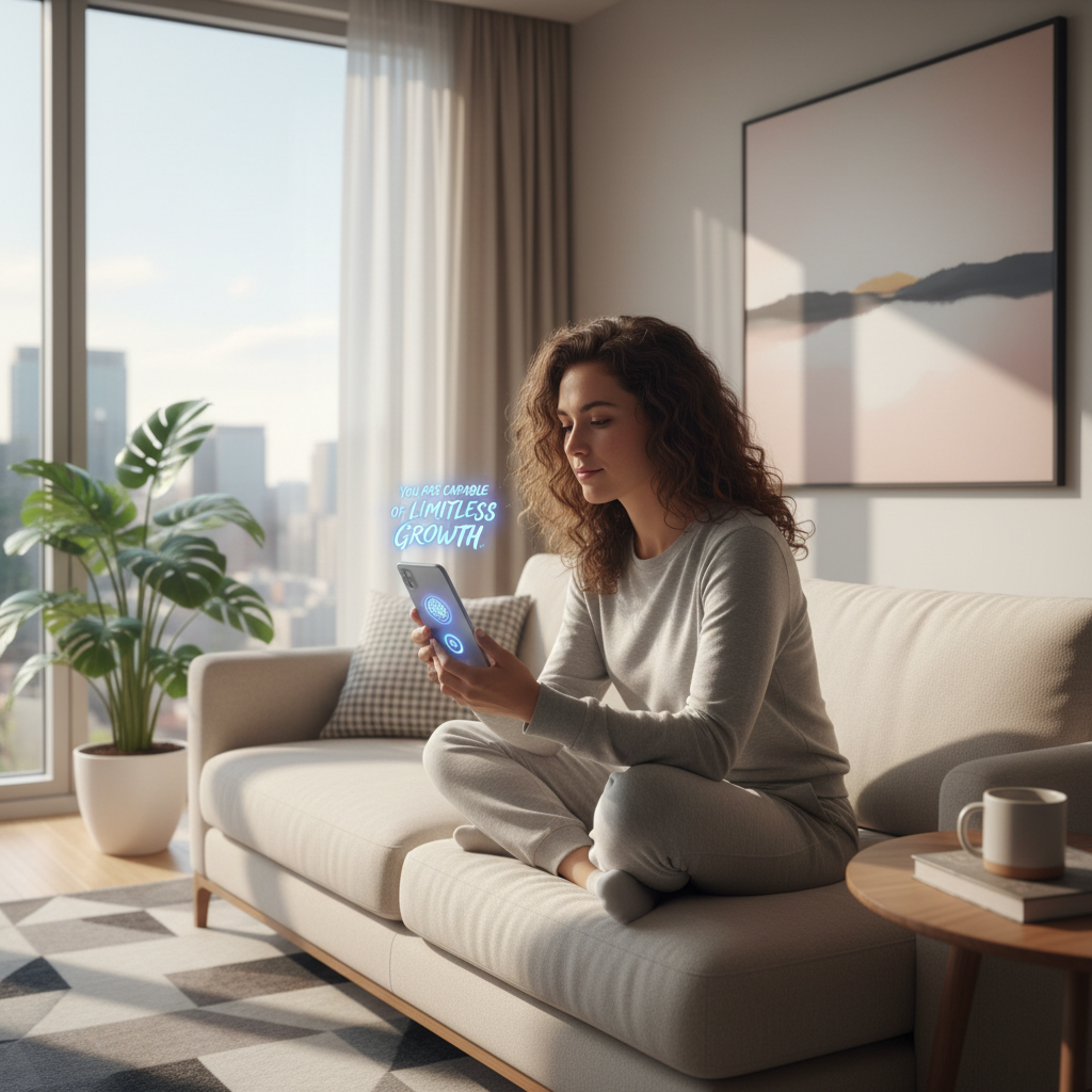 - Biofeedback i mindfulness: Niektóre aplikacje wykorzystują sensory i technologie monitorujące, by dopasować afirmacje do stanu fizjologicznego (np. stres, tętno).